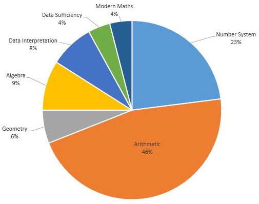 A new topic named Problem Solving was also introduced and it was decided that 10% time of all topics except Arithmetic will be devoted to it. What will be the central angle (in degrees) made by Problem Solving in the new pie chart ?