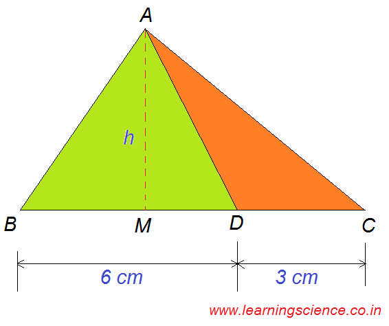 Q.15) In triangle ABC, a line is drawn from the vertex A to a point D on BC. If BC = 9 cm and DC = 3 cm, then what is the ratio of the areas of triangle ABD and triangle ADC respectively ?